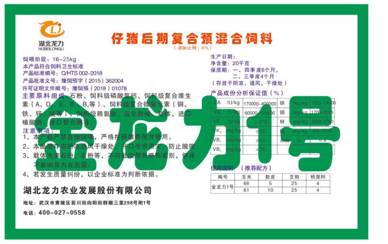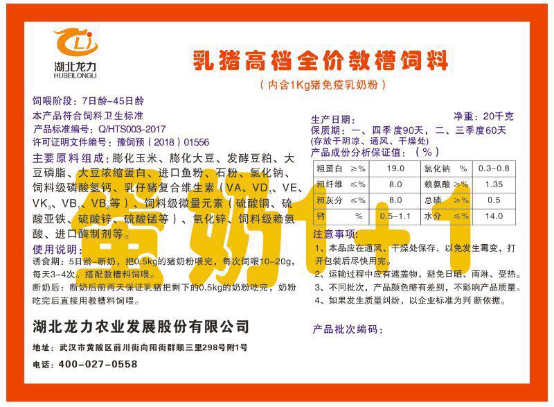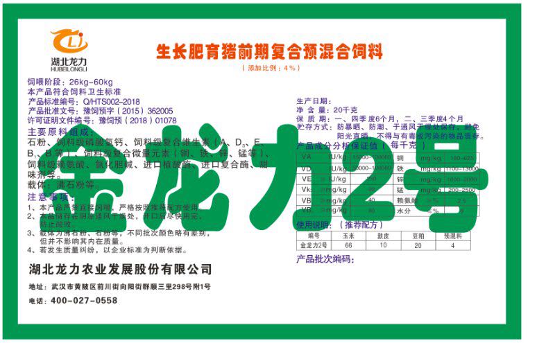 湖北龍力農(nóng)業(yè)發(fā)展股份有限公司坐落于武漢市黃陂區(qū)前川街向陽(yáng)街群順三里298號(hào)附1號(hào)。公司成立于2014年6月,公司自成立以來把“創(chuàng)全球最大養(yǎng)豬綜合服務(wù)”為企業(yè)愿景。致力于打造教保料品牌”作為公司發(fā)展的明確目標(biāo)。公司一直致力于豬營(yíng)養(yǎng)的研究和開發(fā),積極與國(guó)內(nèi)外高校和科研機(jī)構(gòu)合作,推廣養(yǎng)豬技術(shù)、動(dòng)物營(yíng)養(yǎng)新概念,向世界農(nóng)牧企業(yè)學(xué)習(xí)與合作。公司采用國(guó)內(nèi)先進(jìn)的生產(chǎn)工藝,選擇高精度電子配料秤,高均勻度、無殘留混合機(jī)等先進(jìn)設(shè)備....